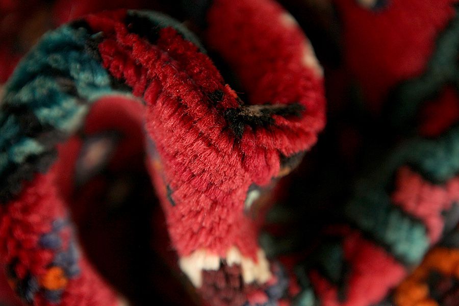 Abrash: Causa la differente grassezza delle lane e la differente quantità di sale ,nel corso del processo di tintura ,le lane assorbono quantitativi diversi di colore.Questo non è tanto visibile prima della tintura .Nel corso della tessitura però risultano variazioni cromatiche. Questo si chiama Abrash ed è la prova della genuinità e dell' autenticità di questi tappeti ,per i quali non vengono usate sostanze chimiche. Esempi
