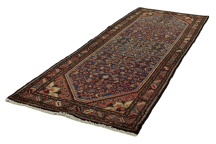 Tappeti Hamadan: La città Hamadan si trova nella parte nordoccidentale dell'Iran,300 chilometri a occidente di Teheran.Risulta una delle più antiche città del mondo e viene riferita nelle Sacre Scritture come Ecvatana.Questa città costituisce un centro di raccolta e di commercio dei tappeti fabbricati in centinaia di paesi e città vicini.Molti di tali manufatti sono venduti con loro nomi,tipo Nahavand,Tuiserkan,Malayer,Hosseinabad,Burchalow,Enjilas,Lilihan,Khamse e Zanjan.I tappeti più semplici della zona sono venduti col nome Hamadan.Ogni paese ha il suo modo di tessere tappeti,con disegni e colori propri.Per la maggior parte dei tappeti Hamadan si usa lana di buona qualità e a vari di colori.Le tinture sono vegetali e dominano diverse sfumature di blu indaco e di rosso.