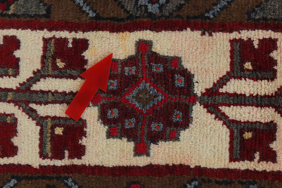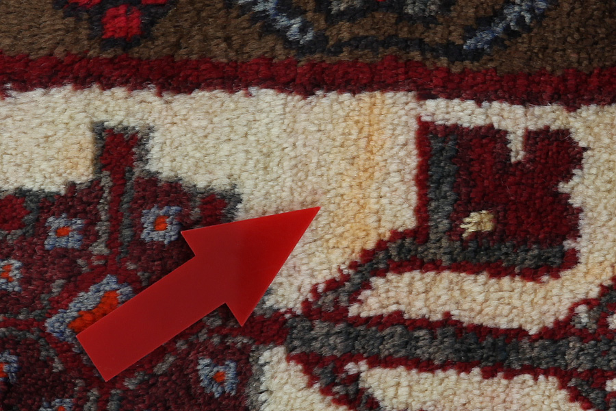 Abrash: Causa la differente grassezza delle lane e la differente quantità di sale ,nel corso del processo di tintura ,le lane assorbono quantitativi diversi di colore.Questo non è tanto visibile prima della tintura .Nel corso della tessitura però risultano variazioni cromatiche. Questo si chiama Abrash ed è la prova della genuinità e dell' autenticità di questi tappeti ,per i quali non vengono usate sostanze chimiche. Esempi
