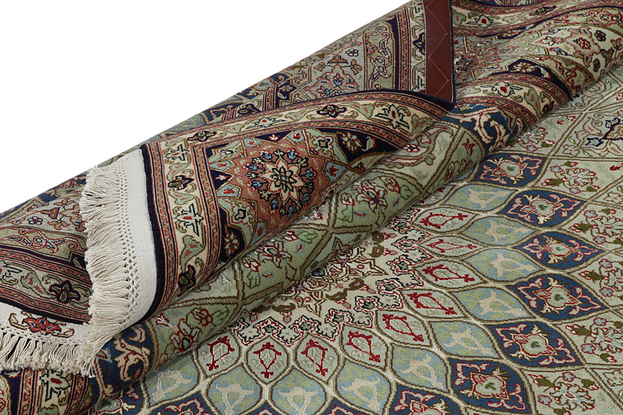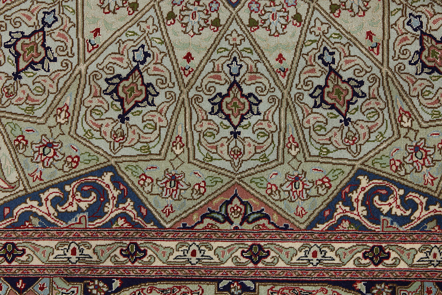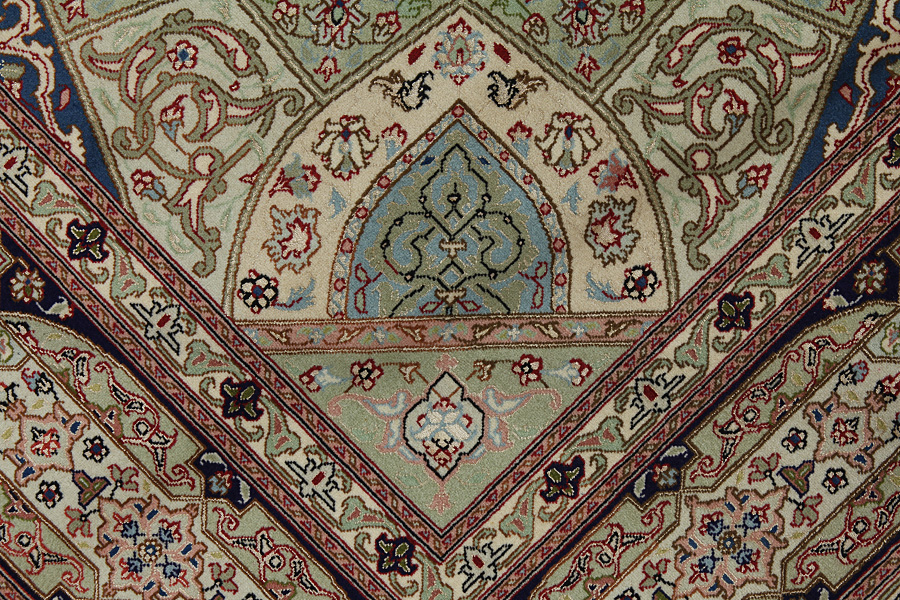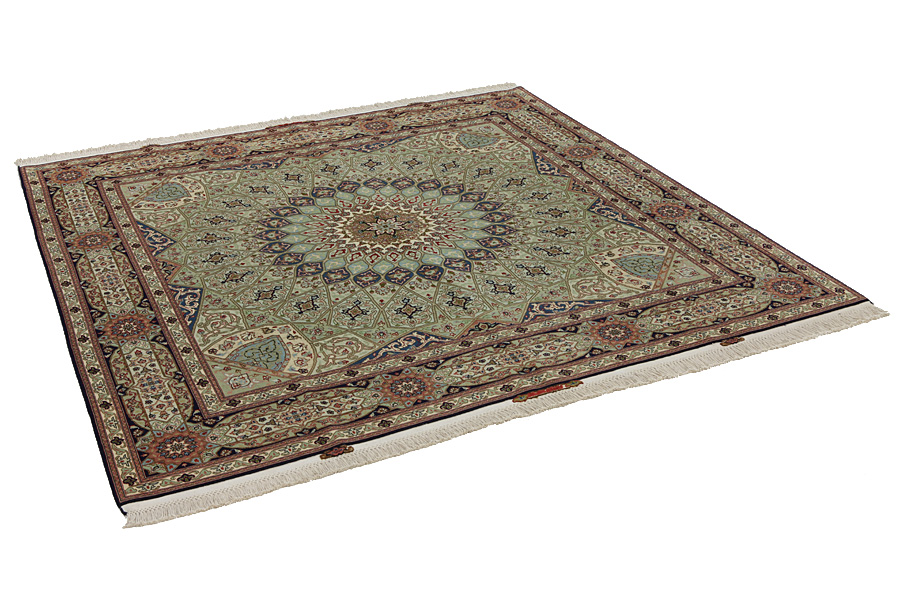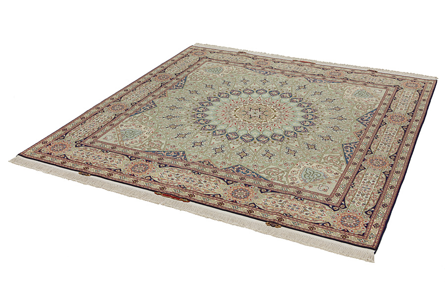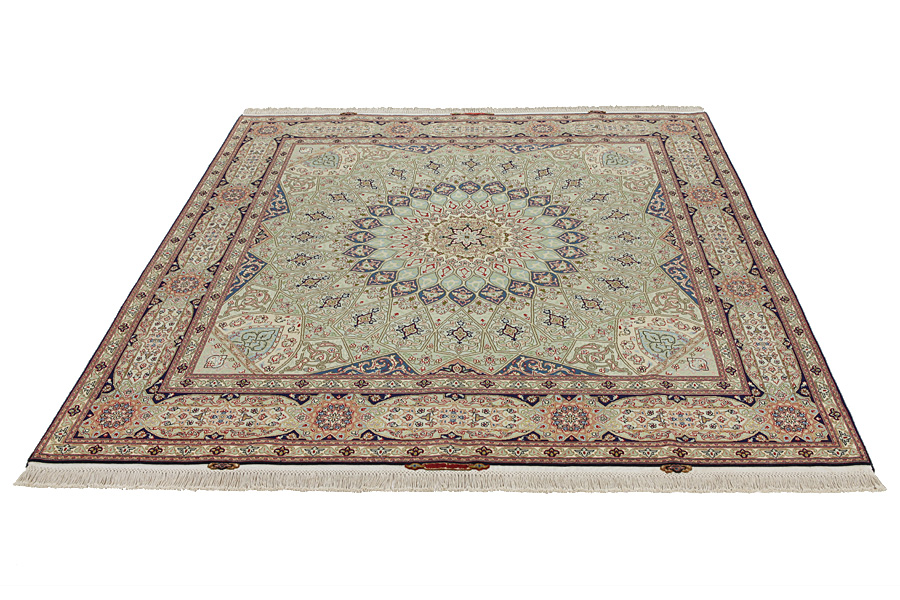 Tappeti Tabriz: La città di Tabriz è il capoluogo della provincia Azerbaijan,nell' Iran sudoccidentale.Fino alla fine dell' epoca delle carovane,era il centro più importante per il commercio e la tessitura dei tappeti.Da qui l' Occidente si procurava i capolavori creati da rinomati e abilissimi artigiani.L'alta qualità di questi manufatti li rese assai noti sui mercati di tutto il mondo.Sorsero molti laboratori di tappeti artigianali ,dove tessevano disegni vecchi e nuovi in nodi molto fitti e con materiali di ottima qualità. La seta e la lana sottile pregiata, li rendono tappeti d' alta classe.Da nessun' altra città della Persia passavano tanto grande varietà e tale quantità di tappeti.Con medaglioni o senza, i loro disegni sono pieni di fantasia e unici.Fiori, raffigurazioni e versi di poesie, decorano in oltre i tappeti. I colori di tappeti Tabriz dominanti sono il beige,il blu e il rosso.