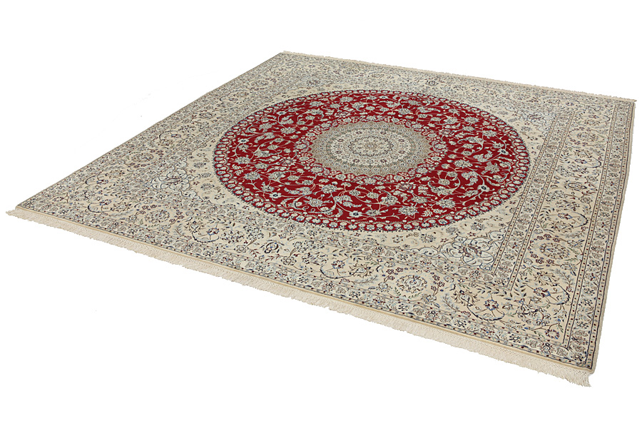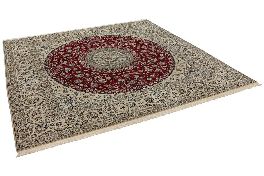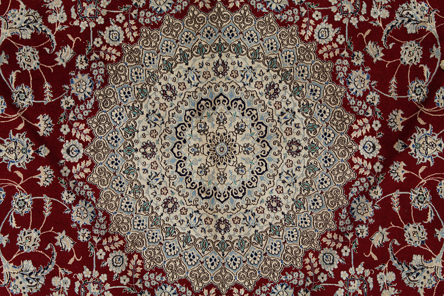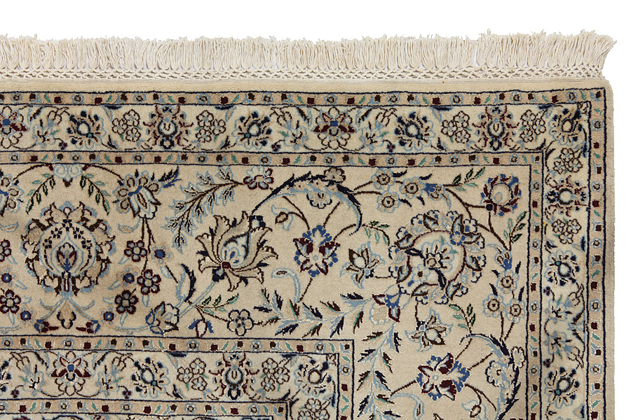 Tappeti Nain6la: I tappeti Nain si tessono anche nelle vicine regioni e non esclusivamente nella stessa città. In più dei tappeti utilizzano di solito di cotone al’ordito. L’ordito è fatto di un numero particolare di fili che si chiamano “La”. Questo tipo di tappeto Nain 6La è fatto di sei fili (6La) e il suo tessuto è molto sottile, dacché e dai più eleganti 6La di qualità La.