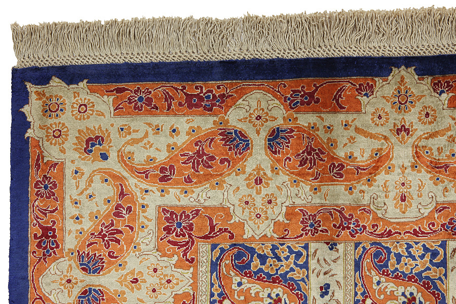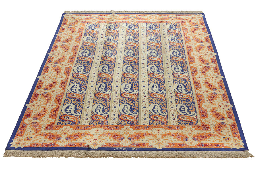 Tappeti Qum: Qum (o Ghom) è una città dell' Iran che gli Sciiti considerano sacra.Si trova a 156 km da Teheran,sulle rive dell' omonimo fiume ed è il capoluogo della provincia di Qum.La produzione su larga scala di tappeti Qum ebbe inizio nel 1930,imitando diversi motivi di vecchi tappeti Senneh,Kashan,Isfahan e di altri rinomati tappeti persiani.Una nuova generazione di disegnatori creò disegni originali con colori rari,per i tappeti persiani,come il verde chiaro e il blu-turchese.Pertanto i tappeti Qum acquisirono uno stile tutto loro.Tra i tanti disegni,famoso è il cosiddetto Giardino(Khesti).Il Giardino è un disegno con diversi quadrati ripetuti ,in cui sono raffigurati fiori o animali(uccelli,leoni alati,draghi),vecchie raffigurazioni persianecon scene di caccia o diverse scene storiche.Sono in oltre molto noti i Tappeti della Preghiera con varie tematiche religiose .Questi tappeti hanno grande densità di nodi e materiali d' alta classe.La seta e la pregiata lana sottile rendono questi manufatti pregiati.