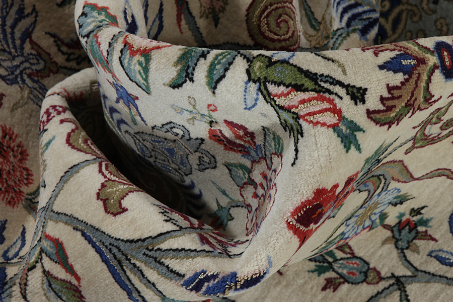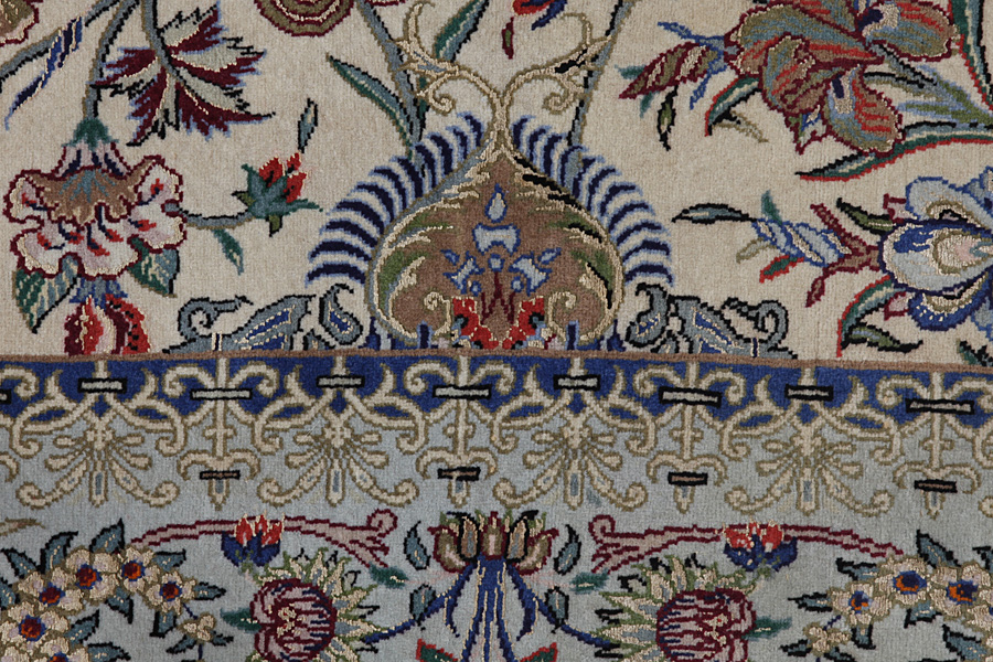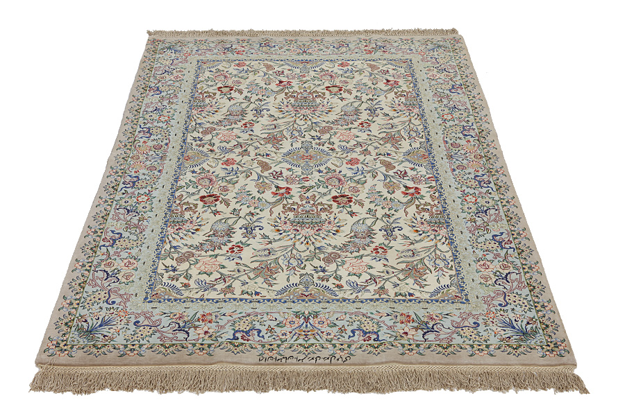 Tappeti Isfahan: Al centro dell' Iran tra i monti Zagros e il deserto,si trova la città di Isfahan.Oggi costituisce un significativo centro industriale con 1,2 milioni di abitanti.La cittadina è un gioiello architettonico.I vecchi Isfahan a differenza dei recenti,non avevano un medaglione centrale.Tutta la superficie del manufatto era ricoperta di elaborati fiori elicoidali e di fiori anthemia(palmette).I più recenti tappeti Isfahan non possono reggere il confronto con quelli antichi,che erano fabbricati esclusivamente per aristocratici.Continuando tuttavia la tradizione, anche gli odierni tappeti di Isfahan sono intessuti sottili e hanno il pelo corto,per far risaltare il loro disegno.Nella tessitura viene utilizzata anche la seta,per far risaltarealcune parti del disegno,soprattutto i fiori.Hanno l' ordito di seta o cotone.