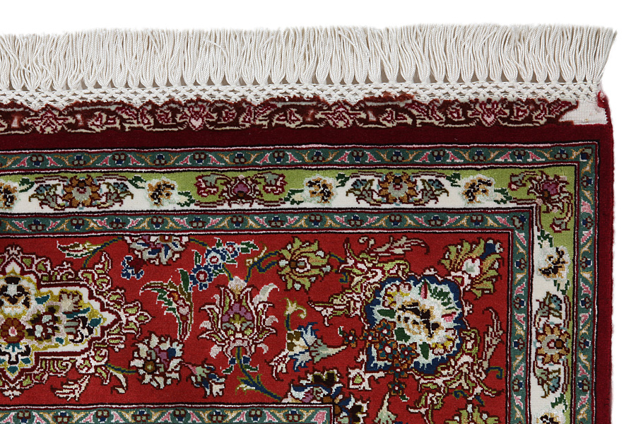 Tappeti Tabriz: La città di Tabriz è il capoluogo della provincia Azerbaijan,nell' Iran sudoccidentale.Fino alla fine dell' epoca delle carovane,era il centro più importante per il commercio e la tessitura dei tappeti.Da qui l' Occidente si procurava i capolavori creati da rinomati e abilissimi artigiani.L'alta qualità di questi manufatti li rese assai noti sui mercati di tutto il mondo.Sorsero molti laboratori di tappeti artigianali ,dove tessevano disegni vecchi e nuovi in nodi molto fitti e con materiali di ottima qualità. La seta e la lana sottile pregiata, li rendono tappeti d' alta classe.Da nessun' altra città della Persia passavano tanto grande varietà e tale quantità di tappeti.Con medaglioni o senza, i loro disegni sono pieni di fantasia e unici.Fiori, raffigurazioni e versi di poesie, decorano in oltre i tappeti. I colori di tappeti Tabriz dominanti sono il beige,il blu e il rosso.