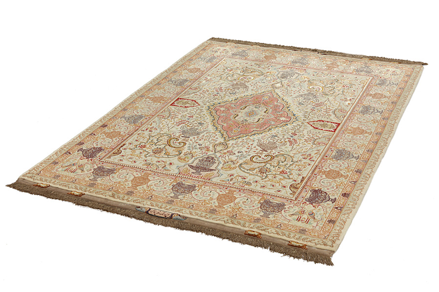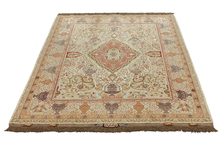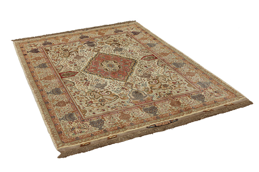 Tappeti Tabriz: La città di Tabriz è il capoluogo della provincia Azerbaijan,nell' Iran sudoccidentale.Fino alla fine dell' epoca delle carovane,era il centro più importante per il commercio e la tessitura dei tappeti.Da qui l' Occidente si procurava i capolavori creati da rinomati e abilissimi artigiani.L'alta qualità di questi manufatti li rese assai noti sui mercati di tutto il mondo.Sorsero molti laboratori di tappeti artigianali ,dove tessevano disegni vecchi e nuovi in nodi molto fitti e con materiali di ottima qualità. La seta e la lana sottile pregiata, li rendono tappeti d' alta classe.Da nessun' altra città della Persia passavano tanto grande varietà e tale quantità di tappeti.Con medaglioni o senza, i loro disegni sono pieni di fantasia e unici.Fiori, raffigurazioni e versi di poesie, decorano in oltre i tappeti. I colori di tappeti Tabriz dominanti sono il beige,il blu e il rosso.