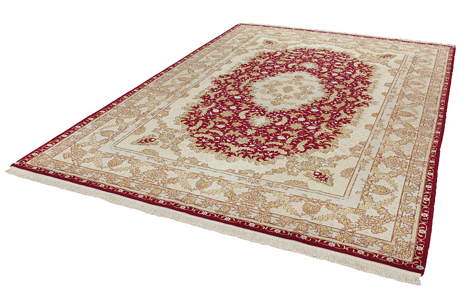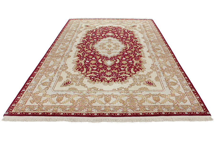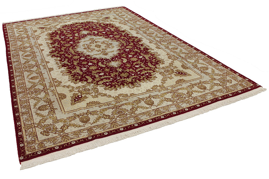 Tappeti Tabriz: La città di Tabriz è il capoluogo della provincia Azerbaijan,nell' Iran sudoccidentale.Fino alla fine dell' epoca delle carovane,era il centro più importante per il commercio e la tessitura dei tappeti.Da qui l' Occidente si procurava i capolavori creati da rinomati e abilissimi artigiani.L'alta qualità di questi manufatti li rese assai noti sui mercati di tutto il mondo.Sorsero molti laboratori di tappeti artigianali ,dove tessevano disegni vecchi e nuovi in nodi molto fitti e con materiali di ottima qualità. La seta e la lana sottile pregiata, li rendono tappeti d' alta classe.Da nessun' altra città della Persia passavano tanto grande varietà e tale quantità di tappeti.Con medaglioni o senza, i loro disegni sono pieni di fantasia e unici.Fiori, raffigurazioni e versi di poesie, decorano in oltre i tappeti. I colori di tappeti Tabriz dominanti sono il beige,il blu e il rosso.