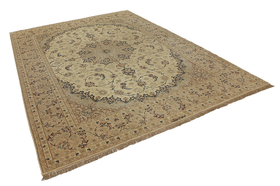 Tappeti Isfahan: Al centro dell' Iran tra i monti Zagros e il deserto,si trova la città di Isfahan.Oggi costituisce un significativo centro industriale con 1,2 milioni di abitanti.La cittadina è un gioiello architettonico.I vecchi Isfahan a differenza dei recenti,non avevano un medaglione centrale.Tutta la superficie del manufatto era ricoperta di elaborati fiori elicoidali e di fiori anthemia(palmette).I più recenti tappeti Isfahan non possono reggere il confronto con quelli antichi,che erano fabbricati esclusivamente per aristocratici.Continuando tuttavia la tradizione, anche gli odierni tappeti di Isfahan sono intessuti sottili e hanno il pelo corto,per far risaltare il loro disegno.Nella tessitura viene utilizzata anche la seta,per far risaltarealcune parti del disegno,soprattutto i fiori.Hanno l' ordito di seta o cotone.