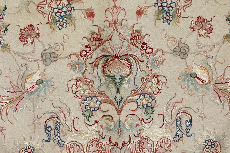 Tappeti Tabriz: La città di Tabriz è il capoluogo della provincia Azerbaijan,nell' Iran sudoccidentale.Fino alla fine dell' epoca delle carovane,era il centro più importante per il commercio e la tessitura dei tappeti.Da qui l' Occidente si procurava i capolavori creati da rinomati e abilissimi artigiani.L'alta qualità di questi manufatti li rese assai noti sui mercati di tutto il mondo.Sorsero molti laboratori di tappeti artigianali ,dove tessevano disegni vecchi e nuovi in nodi molto fitti e con materiali di ottima qualità. La seta e la lana sottile pregiata, li rendono tappeti d' alta classe.Da nessun' altra città della Persia passavano tanto grande varietà e tale quantità di tappeti.Con medaglioni o senza, i loro disegni sono pieni di fantasia e unici.Fiori, raffigurazioni e versi di poesie, decorano in oltre i tappeti. I colori di tappeti Tabriz dominanti sono il beige,il blu e il rosso.