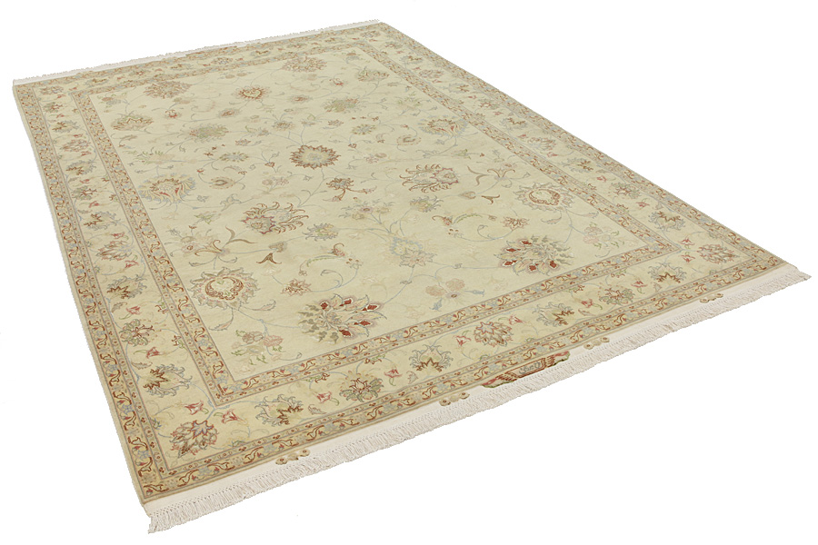 Tappeti Tabriz: La città di Tabriz è il capoluogo della provincia Azerbaijan,nell' Iran sudoccidentale.Fino alla fine dell' epoca delle carovane,era il centro più importante per il commercio e la tessitura dei tappeti.Da qui l' Occidente si procurava i capolavori creati da rinomati e abilissimi artigiani.L'alta qualità di questi manufatti li rese assai noti sui mercati di tutto il mondo.Sorsero molti laboratori di tappeti artigianali ,dove tessevano disegni vecchi e nuovi in nodi molto fitti e con materiali di ottima qualità. La seta e la lana sottile pregiata, li rendono tappeti d' alta classe.Da nessun' altra città della Persia passavano tanto grande varietà e tale quantità di tappeti.Con medaglioni o senza, i loro disegni sono pieni di fantasia e unici.Fiori, raffigurazioni e versi di poesie, decorano in oltre i tappeti. I colori di tappeti Tabriz dominanti sono il beige,il blu e il rosso.