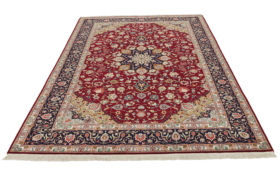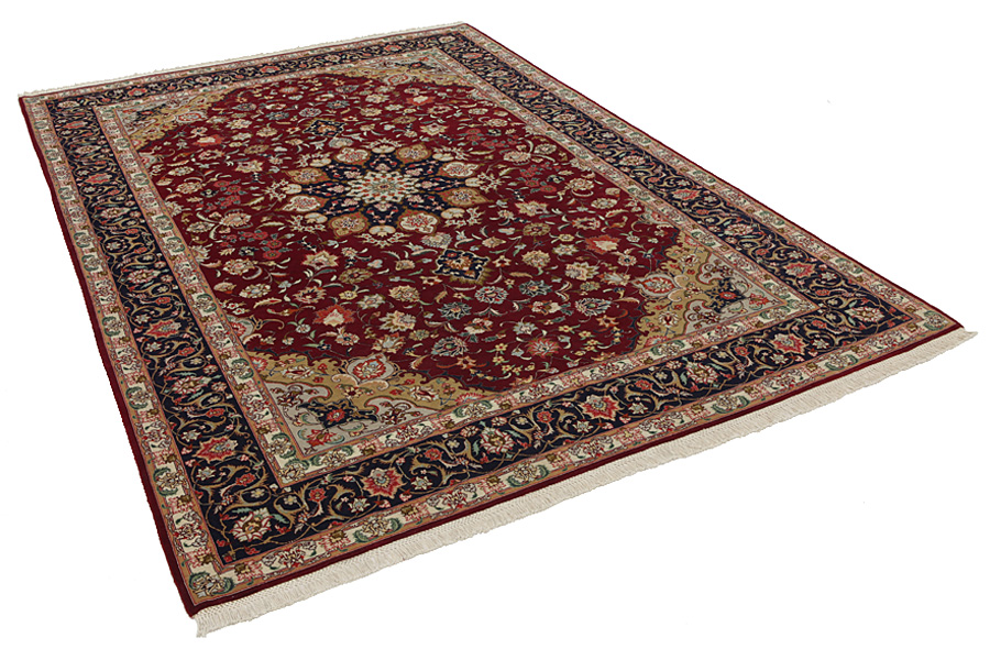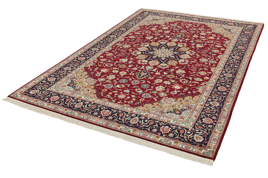 Tappeti Tabriz: La città di Tabriz è il capoluogo della provincia Azerbaijan,nell' Iran sudoccidentale.Fino alla fine dell' epoca delle carovane,era il centro più importante per il commercio e la tessitura dei tappeti.Da qui l' Occidente si procurava i capolavori creati da rinomati e abilissimi artigiani.L'alta qualità di questi manufatti li rese assai noti sui mercati di tutto il mondo.Sorsero molti laboratori di tappeti artigianali ,dove tessevano disegni vecchi e nuovi in nodi molto fitti e con materiali di ottima qualità. La seta e la lana sottile pregiata, li rendono tappeti d' alta classe.Da nessun' altra città della Persia passavano tanto grande varietà e tale quantità di tappeti.Con medaglioni o senza, i loro disegni sono pieni di fantasia e unici.Fiori, raffigurazioni e versi di poesie, decorano in oltre i tappeti. I colori di tappeti Tabriz dominanti sono il beige,il blu e il rosso.