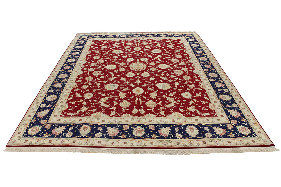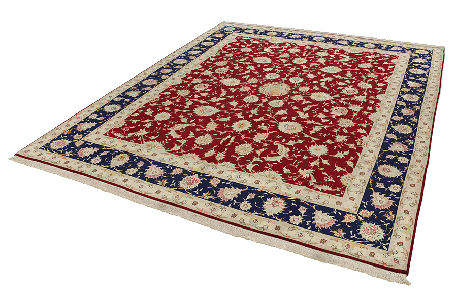 Tappeti Tabriz: La città di Tabriz è il capoluogo della provincia Azerbaijan,nell' Iran sudoccidentale.Fino alla fine dell' epoca delle carovane,era il centro più importante per il commercio e la tessitura dei tappeti.Da qui l' Occidente si procurava i capolavori creati da rinomati e abilissimi artigiani.L'alta qualità di questi manufatti li rese assai noti sui mercati di tutto il mondo.Sorsero molti laboratori di tappeti artigianali ,dove tessevano disegni vecchi e nuovi in nodi molto fitti e con materiali di ottima qualità. La seta e la lana sottile pregiata, li rendono tappeti d' alta classe.Da nessun' altra città della Persia passavano tanto grande varietà e tale quantità di tappeti.Con medaglioni o senza, i loro disegni sono pieni di fantasia e unici.Fiori, raffigurazioni e versi di poesie, decorano in oltre i tappeti. I colori di tappeti Tabriz dominanti sono il beige,il blu e il rosso.