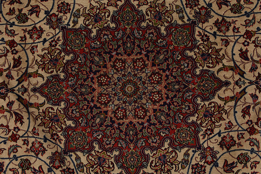 Tappeti Isfahan: Al centro dell' Iran tra i monti Zagros e il deserto,si trova la città di Isfahan.Oggi costituisce un significativo centro industriale con 1,2 milioni di abitanti.La cittadina è un gioiello architettonico.I vecchi Isfahan a differenza dei recenti,non avevano un medaglione centrale.Tutta la superficie del manufatto era ricoperta di elaborati fiori elicoidali e di fiori anthemia(palmette).I più recenti tappeti Isfahan non possono reggere il confronto con quelli antichi,che erano fabbricati esclusivamente per aristocratici.Continuando tuttavia la tradizione, anche gli odierni tappeti di Isfahan sono intessuti sottili e hanno il pelo corto,per far risaltare il loro disegno.Nella tessitura viene utilizzata anche la seta,per far risaltarealcune parti del disegno,soprattutto i fiori.Hanno l' ordito di seta o cotone.