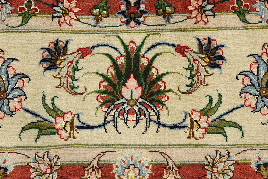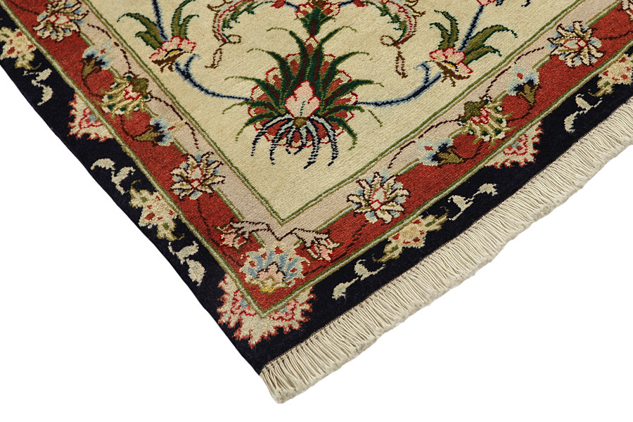 Tappeti Tabriz: La città di Tabriz è il capoluogo della provincia Azerbaijan,nell' Iran sudoccidentale.Fino alla fine dell' epoca delle carovane,era il centro più importante per il commercio e la tessitura dei tappeti.Da qui l' Occidente si procurava i capolavori creati da rinomati e abilissimi artigiani.L'alta qualità di questi manufatti li rese assai noti sui mercati di tutto il mondo.Sorsero molti laboratori di tappeti artigianali ,dove tessevano disegni vecchi e nuovi in nodi molto fitti e con materiali di ottima qualità. La seta e la lana sottile pregiata, li rendono tappeti d' alta classe.Da nessun' altra città della Persia passavano tanto grande varietà e tale quantità di tappeti.Con medaglioni o senza, i loro disegni sono pieni di fantasia e unici.Fiori, raffigurazioni e versi di poesie, decorano in oltre i tappeti. I colori di tappeti Tabriz dominanti sono il beige,il blu e il rosso.