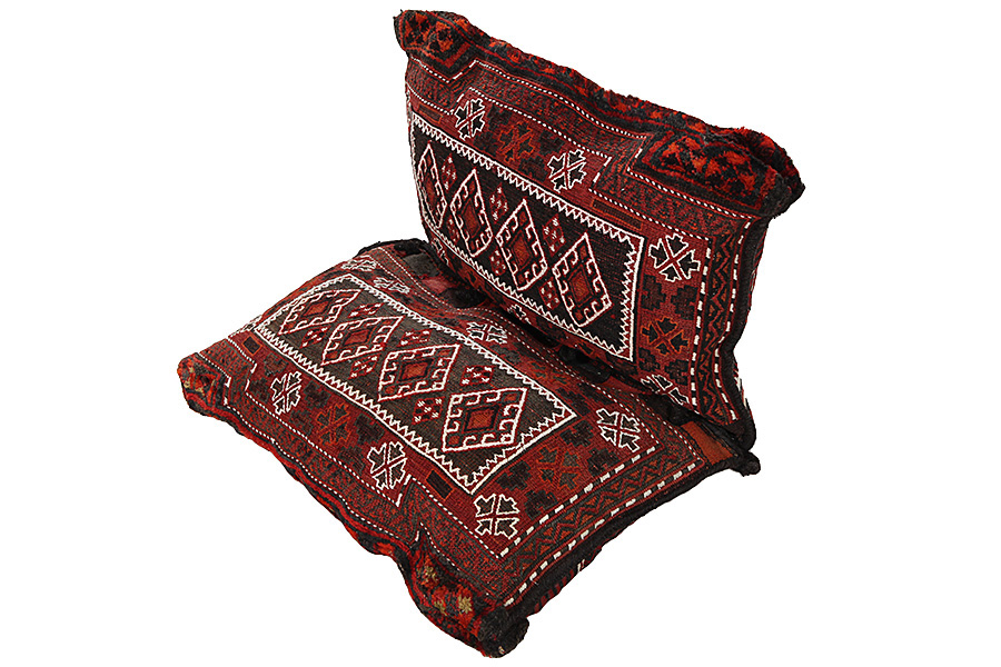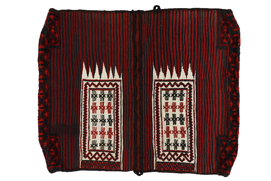 Tappeti Saddle Bag: Borse da sella cavallo sono fatte da nomadi per uso proprio. Si possono distinguere tra i kilim-cavallo borse da sella e le borse da sella cavallo. La parte anteriore di questo sacchetto e annodato come sella da cavallo o è annodato comeun tappeto comune con nodi ma capita anche che vengono utilizzate diverse tecniche di annodamento miste. Le parti laterali sono spesso tessuti mentre nella parte centrale sono applicate speso diverse tecniche di tessitura come i kelim o i Soumak. I colori delle Saltbags sono tutti naturali e creati da gli stessi i Nomadi. Borse come queste di solito vengono usate tutti i giorni per i viaggiatori su asini o cavalli. Un opera d'arte che offre un'atmosfera unica e orientale a casa vostra. Questi sacchetti possono essere utilizzati come cuscini, o per esempio sul pavimento come un cuscino davanti al camino,o come decorazione per il muro. Queste piccole borse da sella cavallo possono anche essere utilizzate come una "tasca" per giornali e altri oggetti quando e appeso suuna sedia o un divano.