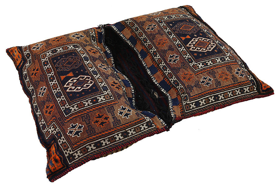 Tappeti Saddle Bag: Borse da sella cavallo sono fatte da nomadi per uso proprio. Si possono distinguere tra i kilim-cavallo borse da sella e le borse da sella cavallo. La parte anteriore di questo sacchetto e annodato come sella da cavallo o è annodato comeun tappeto comune con nodi ma capita anche che vengono utilizzate diverse tecniche di annodamento miste. Le parti laterali sono spesso tessuti mentre nella parte centrale sono applicate speso diverse tecniche di tessitura come i kelim o i Soumak. I colori delle Saltbags sono tutti naturali e creati da gli stessi i Nomadi. Borse come queste di solito vengono usate tutti i giorni per i viaggiatori su asini o cavalli. Un opera d'arte che offre un'atmosfera unica e orientale a casa vostra. Questi sacchetti possono essere utilizzati come cuscini, o per esempio sul pavimento come un cuscino davanti al camino,o come decorazione per il muro. Queste piccole borse da sella cavallo possono anche essere utilizzate come una "tasca" per giornali e altri oggetti quando e appeso suuna sedia o un divano.
