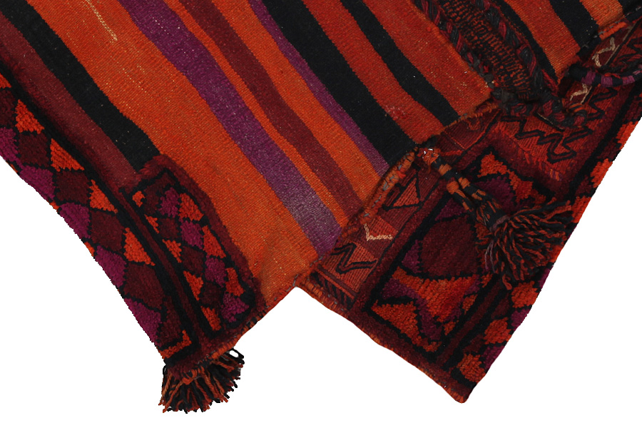 Tessuto a una o ad entrambe le balze terminali del lato lungo del tappeto: In determinati tappeti i nomadi,su una delle due lunghezze o su entrambe,intessono le frange in uno stretto Kilim o le intrecciano elaboratamente in piccole trecce.Trattasi di una tecnica adottata da diversi tessitori per ottenere maggiore robustezza o semplicemente dare sfoggio della loro bravura. Esempi