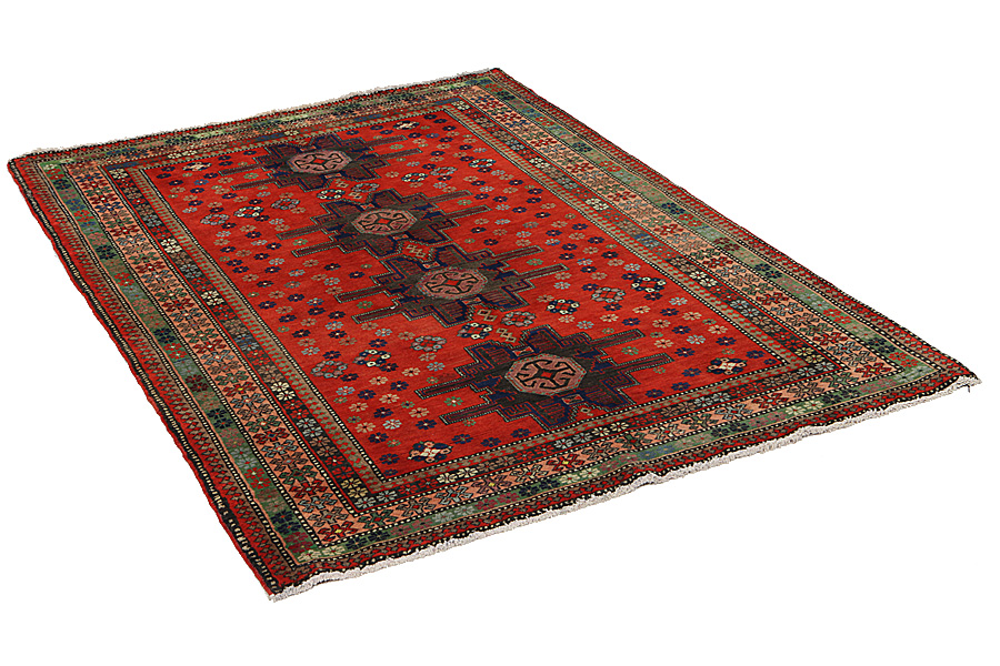 Tappeti Caucasici: I tappeti del Caucasici si tessono nelle regioni montuose che si trovano tra il Mar Nero e il Mar Caspio. In queste regioni vivono molte tribù diverse e con lingue diverse, come i Persiani, i Turkmeni, i Turchi e gli Armeni. Nonostante la diversità della popolazione caucasica, i tappeti che tessono hanno molte cose in comune nel modo di tessere, nei disegni e nei materiali che utilizzano. Le regioni inaccessibili del Caucaso hanno influenzato gli artigiani di tappeti artigianali verso mantenere i vecchi disegni di tappeti senza influenze esteriori. I colori predominanti di tappeti sono il rosso, il blu, il giallo, il verde e l’ecru. I loro motivi sono fortemente geometrici. Stelle, quadrati e croci costituiscono una gran parte dei loro disegni e a volte si tessono figure geometriche di persone e di animali e disegni geometrici di fiori.