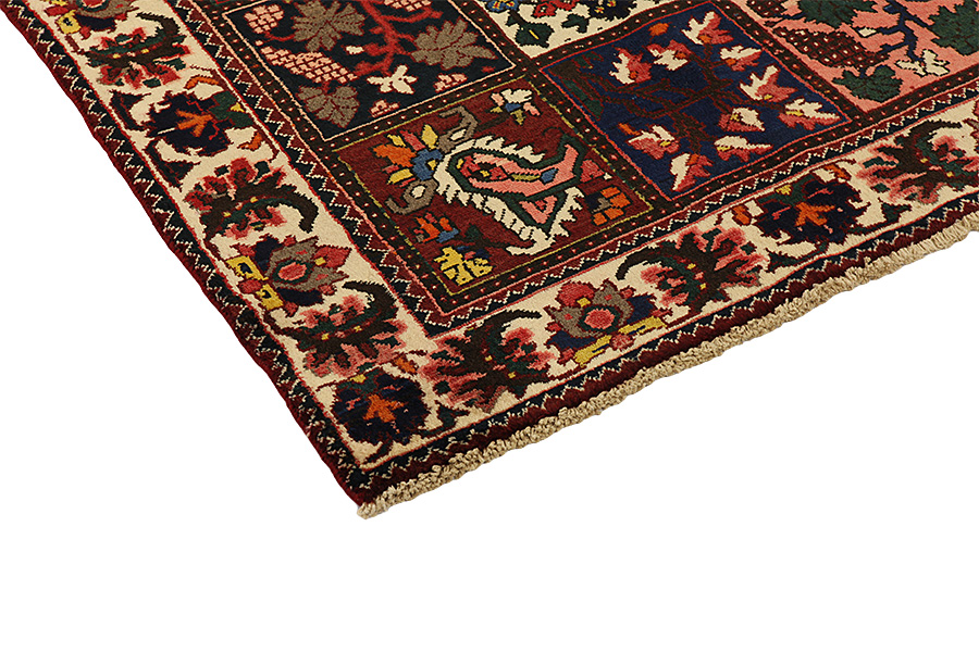 Tappeti Bakhtiari: Sui monti Zagros,a occidente della città Isfahan,intorno alla città Shar-e-Kurd, vivono i nomadi Bakhtiar.I loro tappeti sono noti per il disegno con vari quadrati ripetuti, in cui vengono rappresentati fiori o animali.Per questa ragione il disegno si chiama " Giardino"(Khesti).I loro tappeti sono assai robusti,dalla tessitura fitta e sono di una lana di qualità molto buona,ricavata da pecore che pascolano ad alta quota.I migliori tappeti Bakhtiari che hanno la maggiore fittezza di nodi si chiamano Bibibaf.In oltre in molti disegni si notano influenze dei manufatti Isfahan(Boldaji,Feridan,Saman).