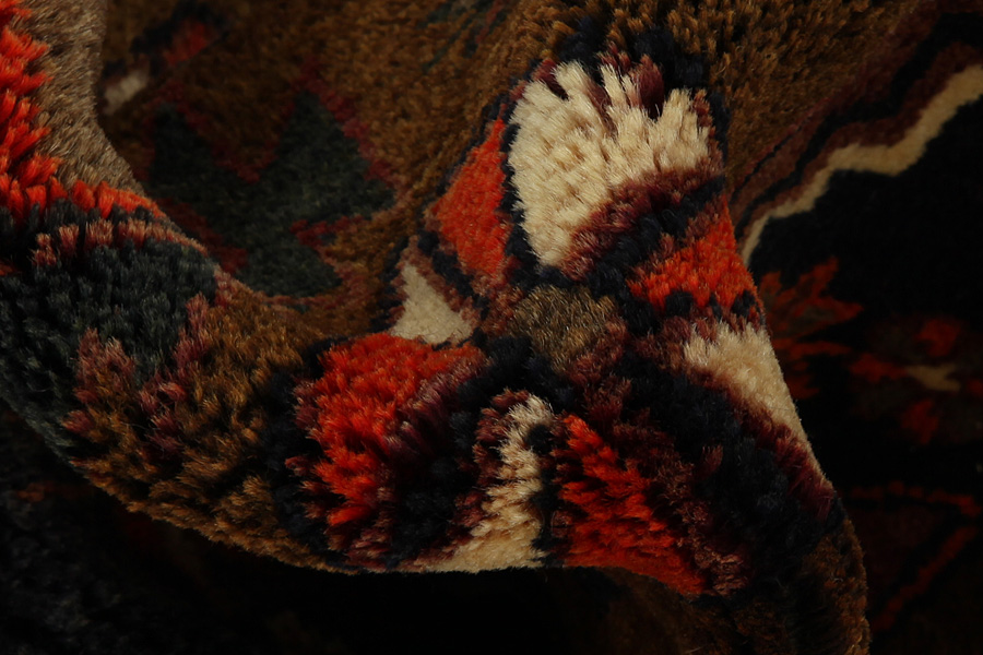 Abrash: Causa la differente grassezza delle lane e la differente quantità di sale ,nel corso del processo di tintura ,le lane assorbono quantitativi diversi di colore.Questo non è tanto visibile prima della tintura .Nel corso della tessitura però risultano variazioni cromatiche. Questo si chiama Abrash ed è la prova della genuinità e dell' autenticità di questi tappeti ,per i quali non vengono usate sostanze chimiche. Esempi