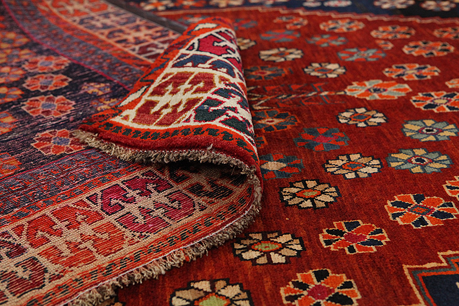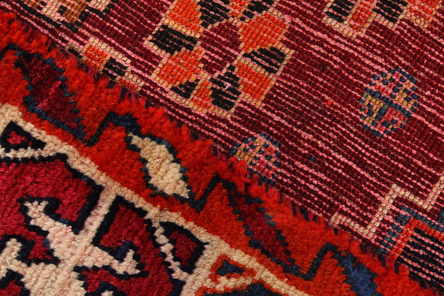 Abrash: Causa la differente grassezza delle lane e la differente quantità di sale ,nel corso del processo di tintura ,le lane assorbono quantitativi diversi di colore.Questo non è tanto visibile prima della tintura .Nel corso della tessitura però risultano variazioni cromatiche. Questo si chiama Abrash ed è la prova della genuinità e dell' autenticità di questi tappeti ,per i quali non vengono usate sostanze chimiche. Esempi