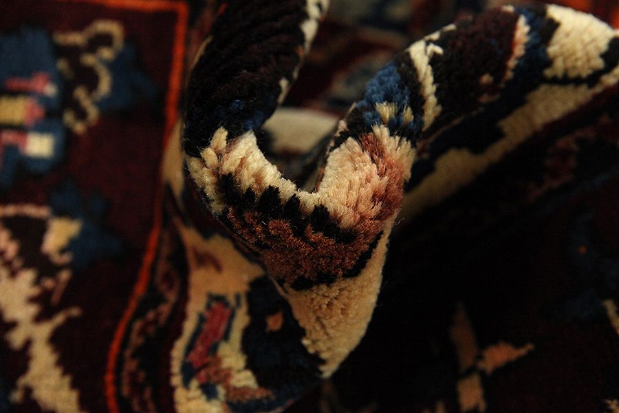 Abrash: Causa la differente grassezza delle lane e la differente quantità di sale ,nel corso del processo di tintura ,le lane assorbono quantitativi diversi di colore.Questo non è tanto visibile prima della tintura .Nel corso della tessitura però risultano variazioni cromatiche. Questo si chiama Abrash ed è la prova della genuinità e dell' autenticità di questi tappeti ,per i quali non vengono usate sostanze chimiche. Esempi