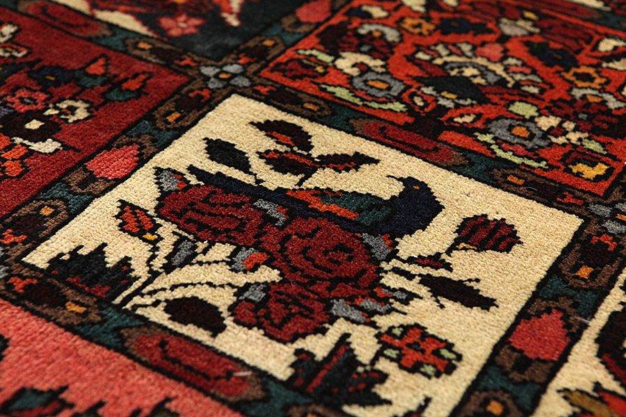 Tappeti Bakhtiari: Sui monti Zagros,a occidente della città Isfahan,intorno alla città Shar-e-Kurd, vivono i nomadi Bakhtiar.I loro tappeti sono noti per il disegno con vari quadrati ripetuti, in cui vengono rappresentati fiori o animali.Per questa ragione il disegno si chiama " Giardino"(Khesti).I loro tappeti sono assai robusti,dalla tessitura fitta e sono di una lana di qualità molto buona,ricavata da pecore che pascolano ad alta quota.I migliori tappeti Bakhtiari che hanno la maggiore fittezza di nodi si chiamano Bibibaf.In oltre in molti disegni si notano influenze dei manufatti Isfahan(Boldaji,Feridan,Saman).