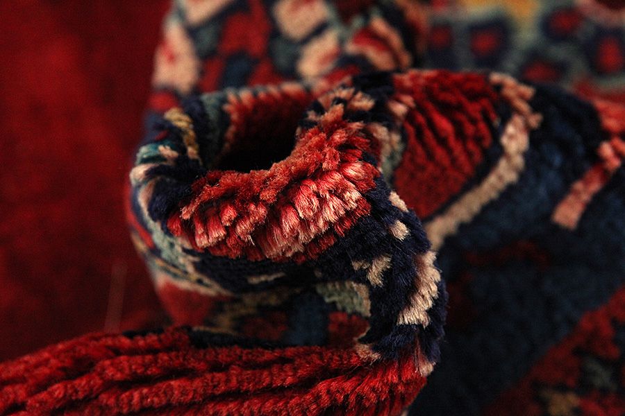 Abrash: Causa la differente grassezza delle lane e la differente quantità di sale ,nel corso del processo di tintura ,le lane assorbono quantitativi diversi di colore.Questo non è tanto visibile prima della tintura .Nel corso della tessitura però risultano variazioni cromatiche. Questo si chiama Abrash ed è la prova della genuinità e dell' autenticità di questi tappeti ,per i quali non vengono usate sostanze chimiche. Esempi